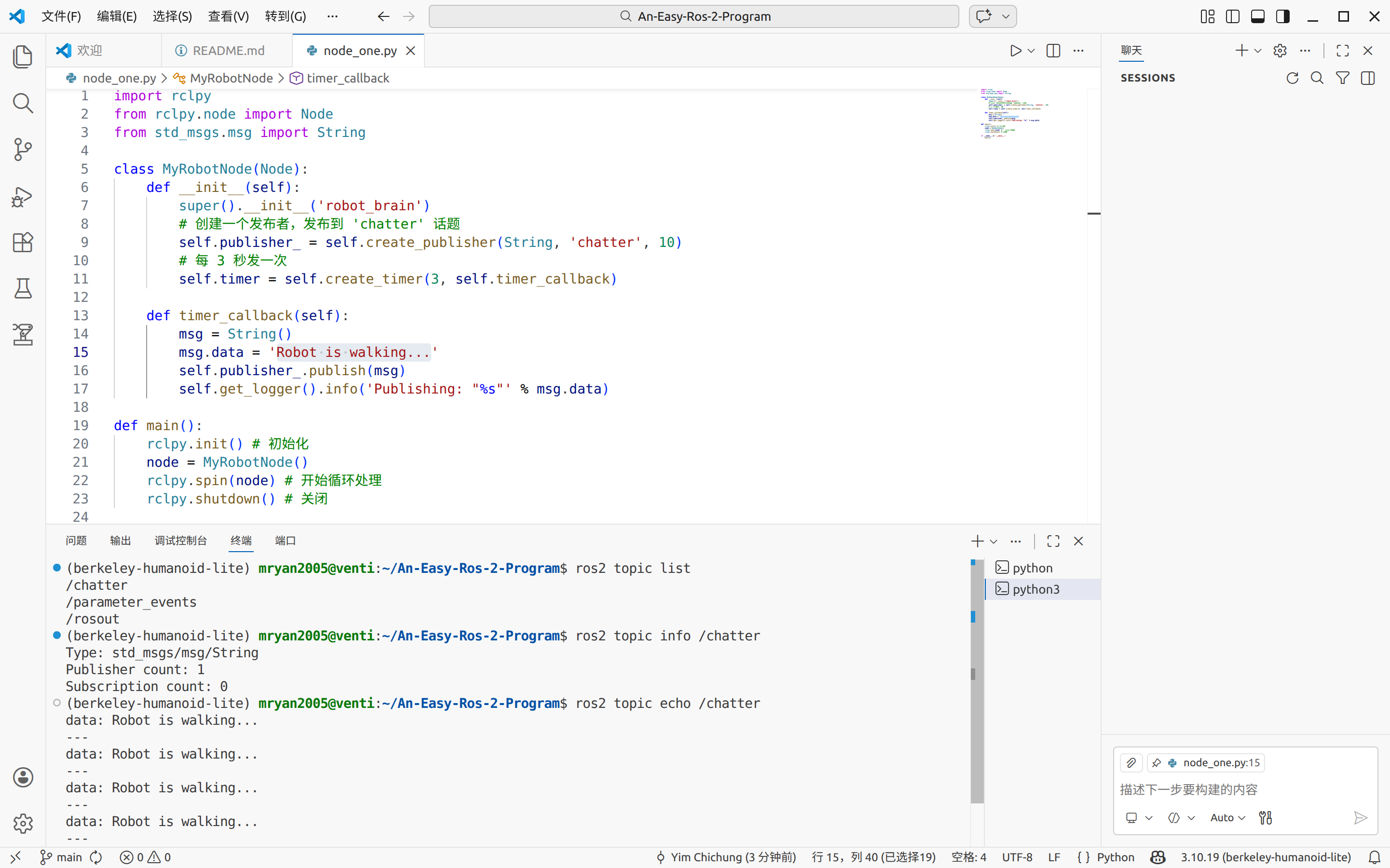 创建一个名为 simple_ros2_node.py 的 Python 文件,并添加以下代码: